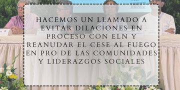 Desde la Coordinación Colombia – Europa – Estados Unidos, plataforma que agrupa 285 organizaciones sociales y ONG para la defensa y protección de los derechos humanos y la construcción de paz, expresamos nuestra preocupación por el estancamiento de las conversaciones entre el Gobierno Nacional y el Ejército de Liberación Nacional (ELN) por el impacto que … Sigue leyendo Hacemos un llamado a evitar dilaciones en proceso con ELN y reanudar el cese al fuego en pro de las comunidades y liderazgos sociales