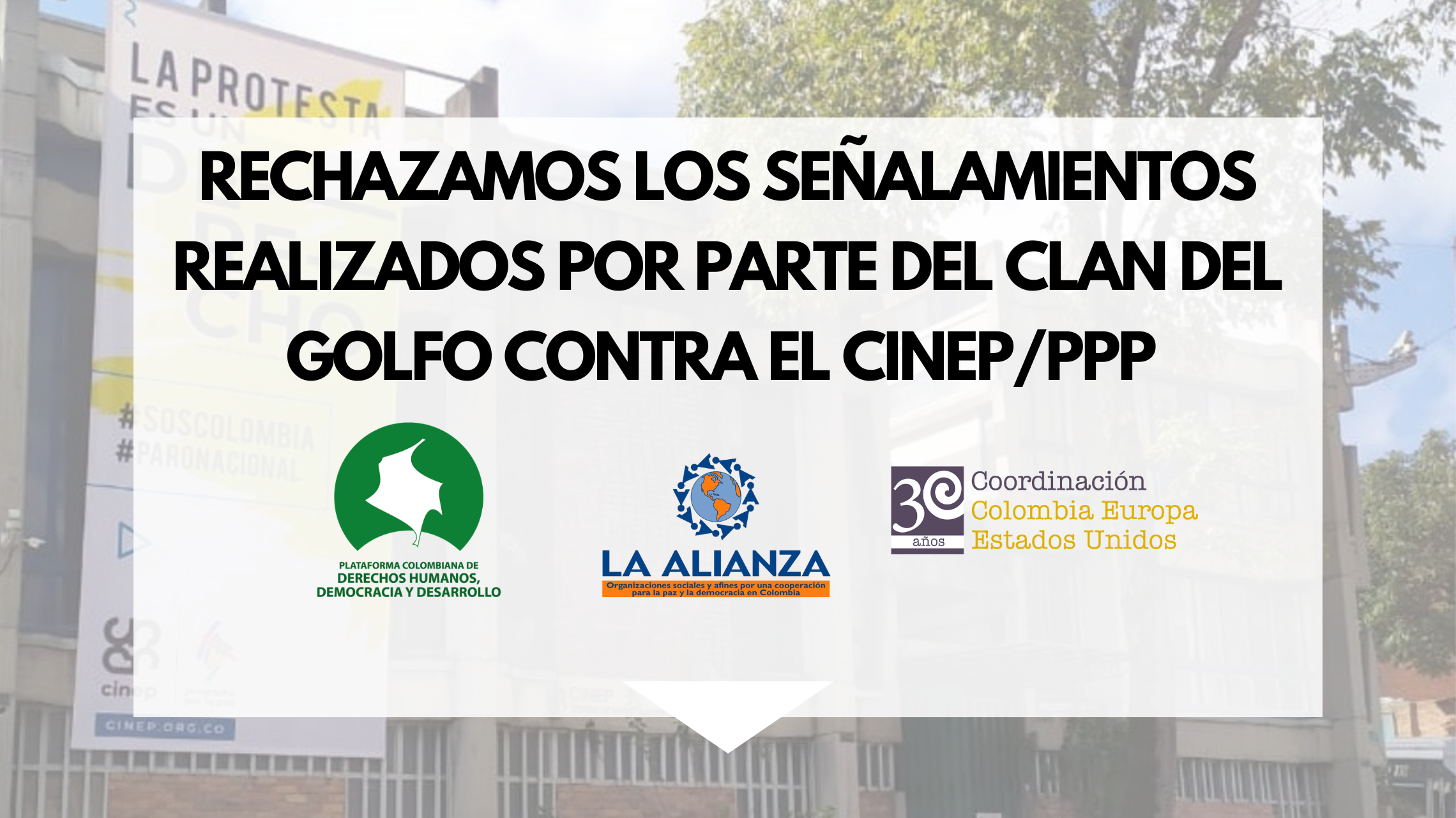 RESPALDAMOS la labor y los aportes de CINEP/PPP y de su equipo de trabajo en la defensa de los derechos humanos y en la construcción de paz, así como su acompañamiento a comunidades y procesos organizativos que trabajan por la justicia social y la transformación de las desigualdades estructurales en Colombia.